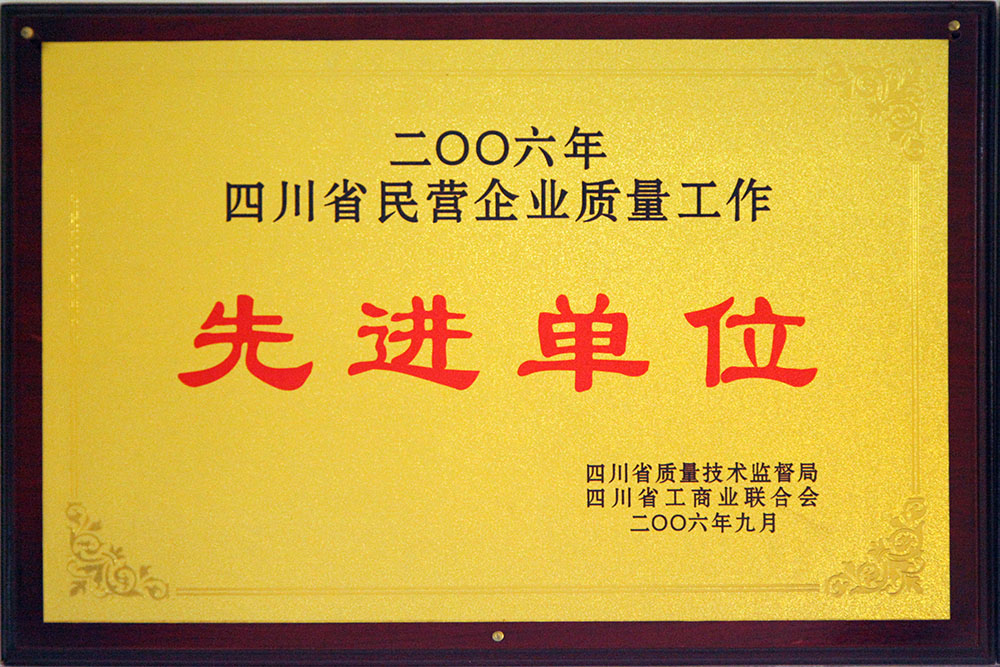 四川省民營企業(yè)質(zhì)量工作先進(jìn)單位